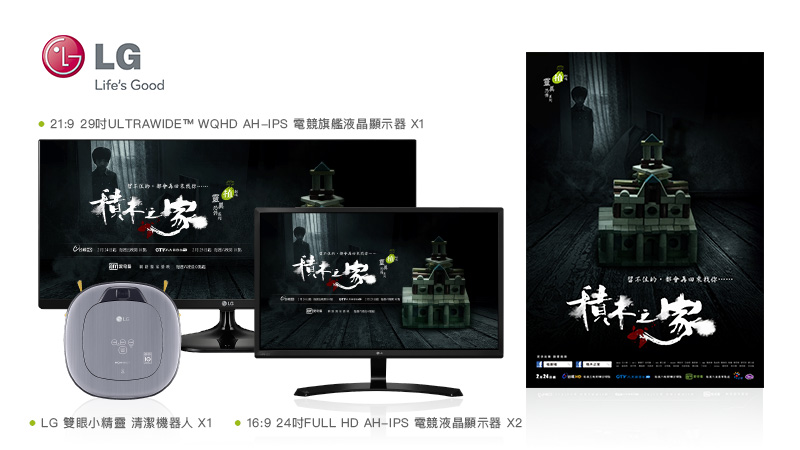 《天黑請閉眼》大獎 / LG V20 x 1、直立式吸塵器 x 1、空氣清淨機 (大龍捲蝸牛) x 1、Minibeam 行動隨身LED微投影機 x 1