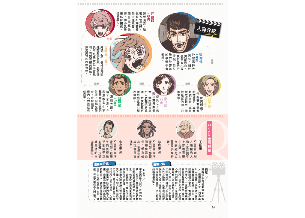 從二〇一五年至二〇一六年,雁心訪談近二十名演員、導演與表演老師,深入了解臺灣的戲劇環境與演員內心與艱苦過程,發想出全新的演員故事。漫畫家HOM擅長描繪人與人之間細膩情感的流動,真摯畫出演員養成過程的笑與淚,將每位個性迥異的年輕演員,演技的細微呈現,都能具有張力地讓你一看就入迷!