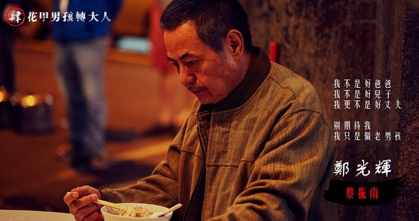 蔡振南劇中飾演鄭花甲(盧廣仲 飾演)爸爸鄭光輝,雖然是大家族長子,但因為年輕被抓去關過,最後老婆離家又離婚,講話沒有什麼份量,要演出中年男子的矛盾,角色十足挑戰。他劇中職業是乩童,有一場需要「九天玄女」上身橋段,瞿友寧導演就爆料,費了好大工夫才說服他,為求真實呈現,劇組特地先到宮廟拍乩童上身影片給他觀摩。