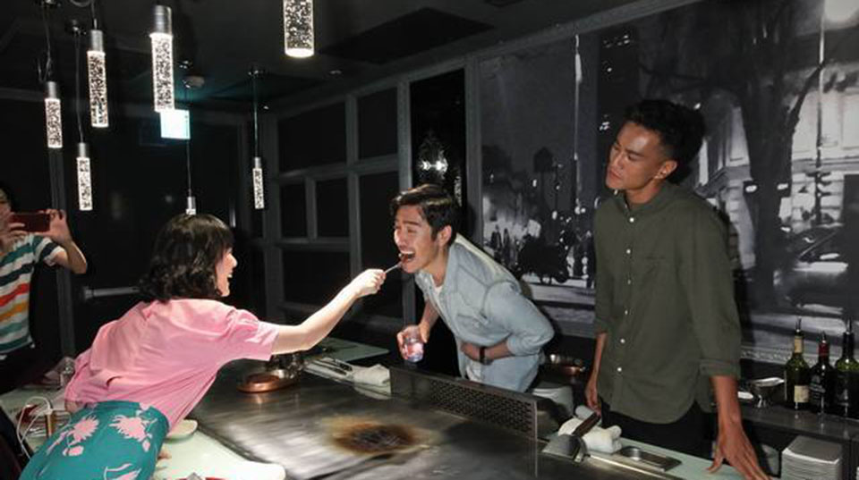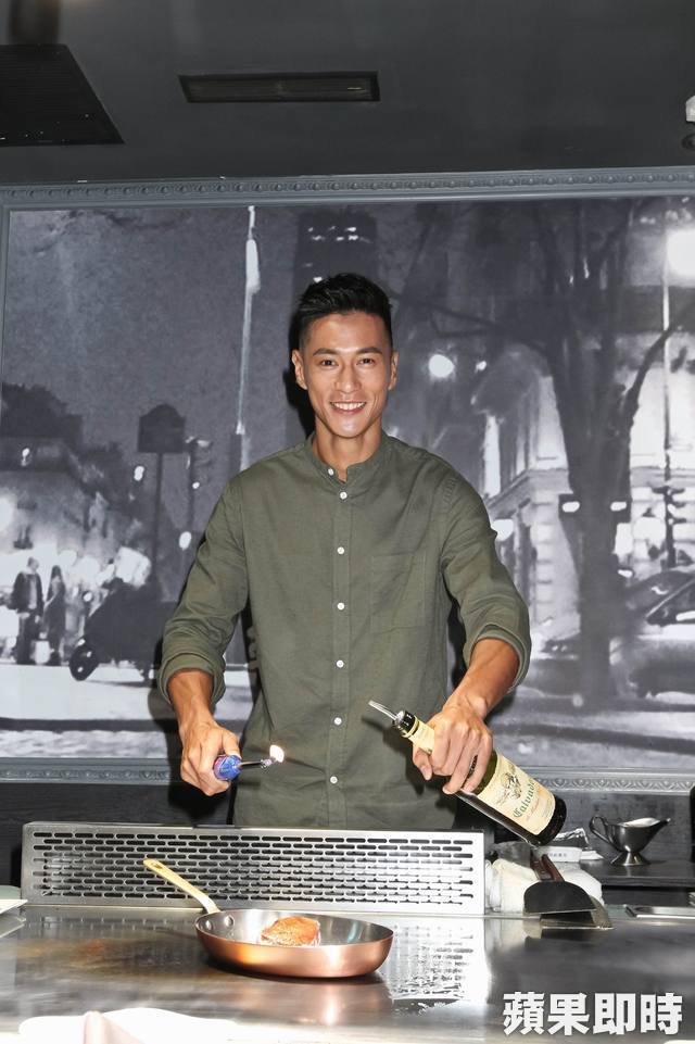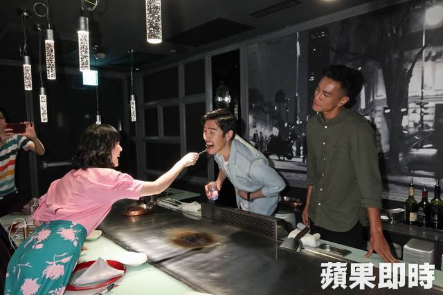 台視、八大、愛奇藝植劇場《五味八珍的歲月》今邀鍾承翰、李至正、孫可芳(小豆)、江常輝丶張耀仁在鐵板燒店學習點火、切菜與擺盤,體驗當年傅培梅為台灣每一個人暖胃的精神。 鍾承翰原本擔心火會燒到臉,覺得有點緊張,但是點火之後,架式十足完成示範。
