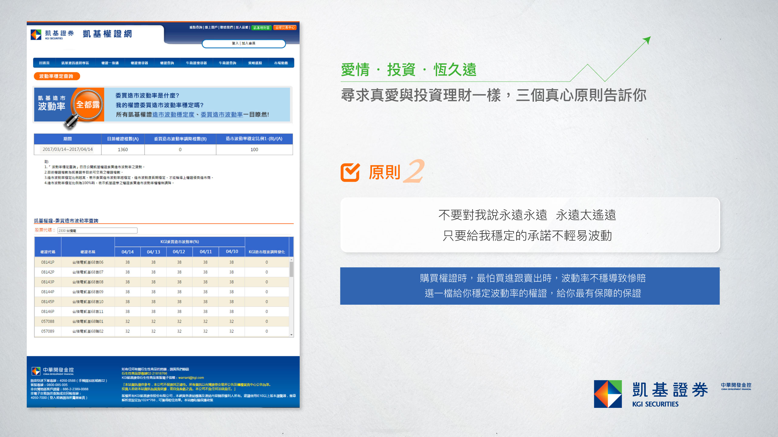 但其實是宇恩有個理財腦袋已經很厲害了,長的還很帥,難怪一堆蝴蝶蜜蜂常繞著他打轉。只是宇恩是個好男人,始終維持交往前穩定的承諾,就像他推薦的權證,維持穩定的造市波動率。畢竟他希望小妮跟他的客戶一樣,不管是投資甚麼,都能安安心心…